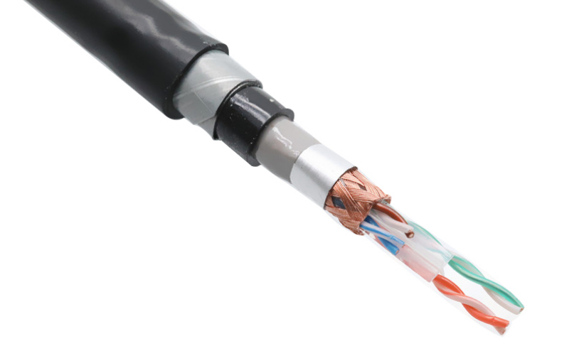 阻燃双屏蔽螺纹钢带铠装超六类铠装网线ZR-FTP53 CAT6A